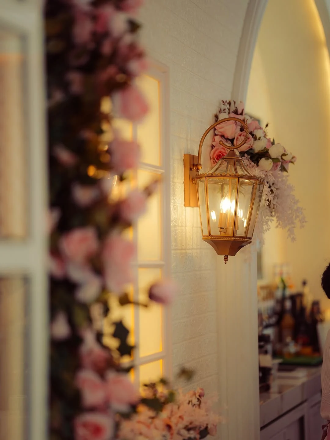 Lighting plays a crucial role in shaping the mood of the café. Rather than functional brightness, the space relies on warm ambient lighting paired with decorative fixtures that double as visual focal points. Chandeliers and accent lights are positioned to enhance seating zones and highlight textures, making the interiors feel layered and intimate.